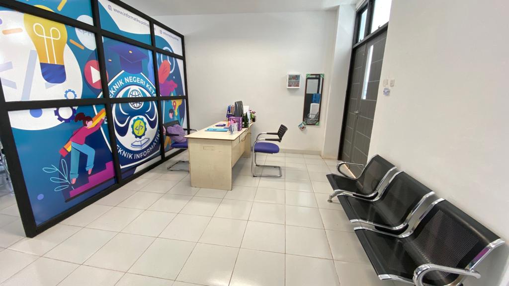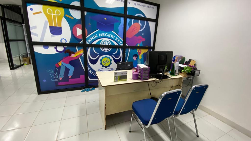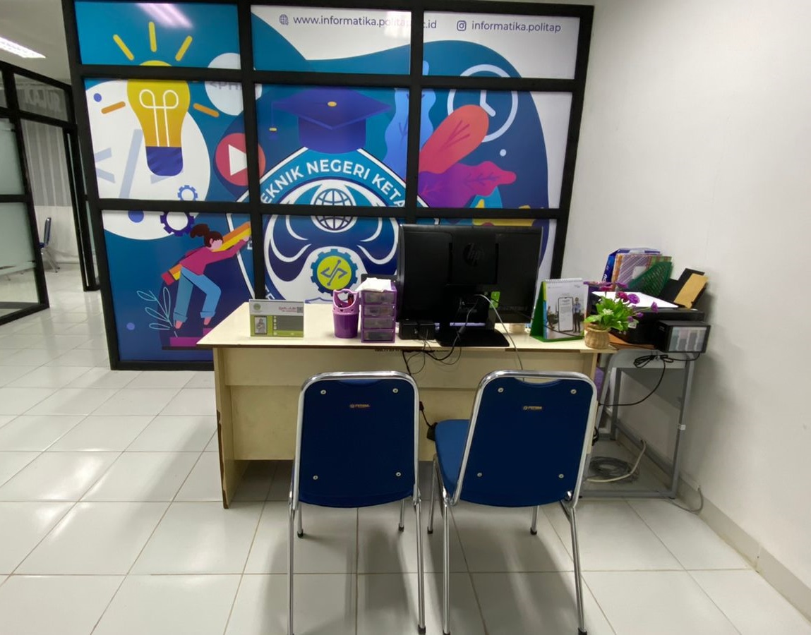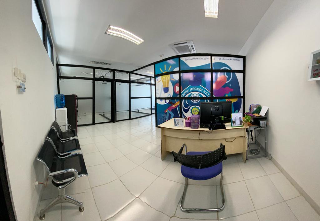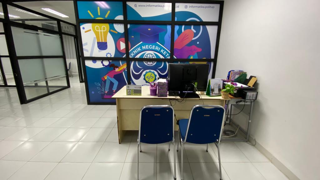 Ruang Administrasi Prodi Teknologi Informasi terletak di lantai 3 Gedung Laboratorium Terpadu dengan luas 16,38 m2 yang digunakan Staf Administrasi Prodi dalam mengkoordinir dan melaksanakan administrasi pendidikan di tingkat jurusan dan membantu sekretaris jurusan dan coordinator program studi dalam melaksanakan kegiatan administratif dan kesekretariatan prodi atau jurusan.